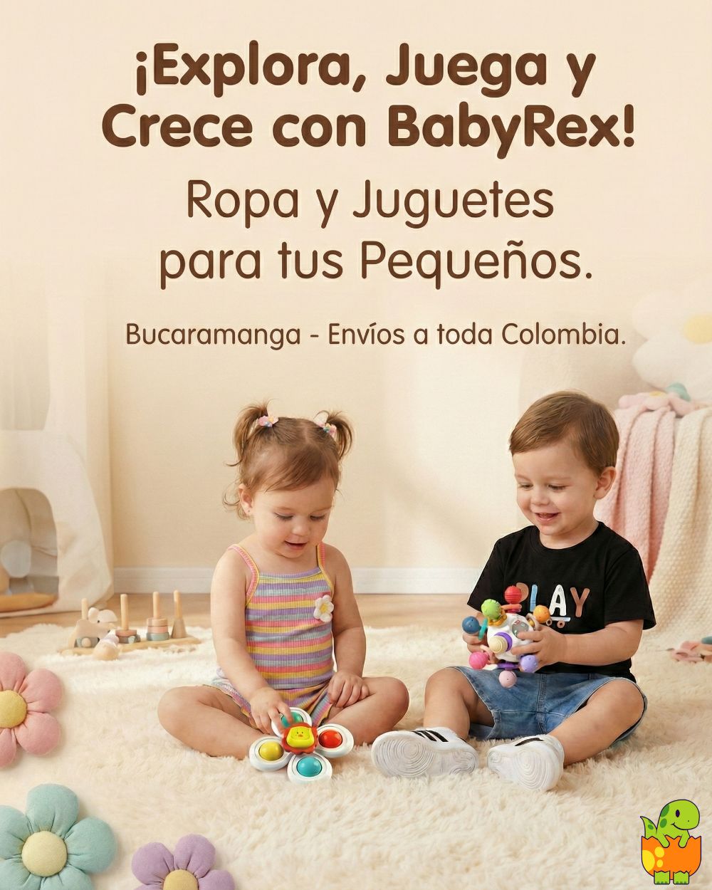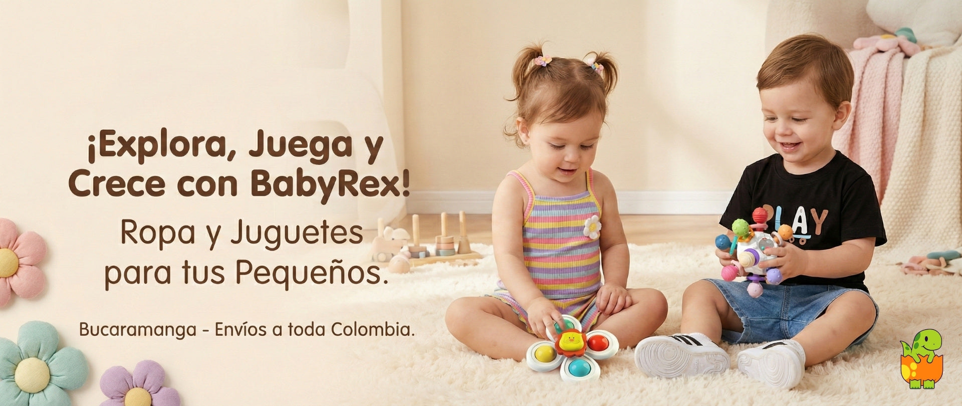 Vestido Beige Floral con Diadema Para Bebe Niña