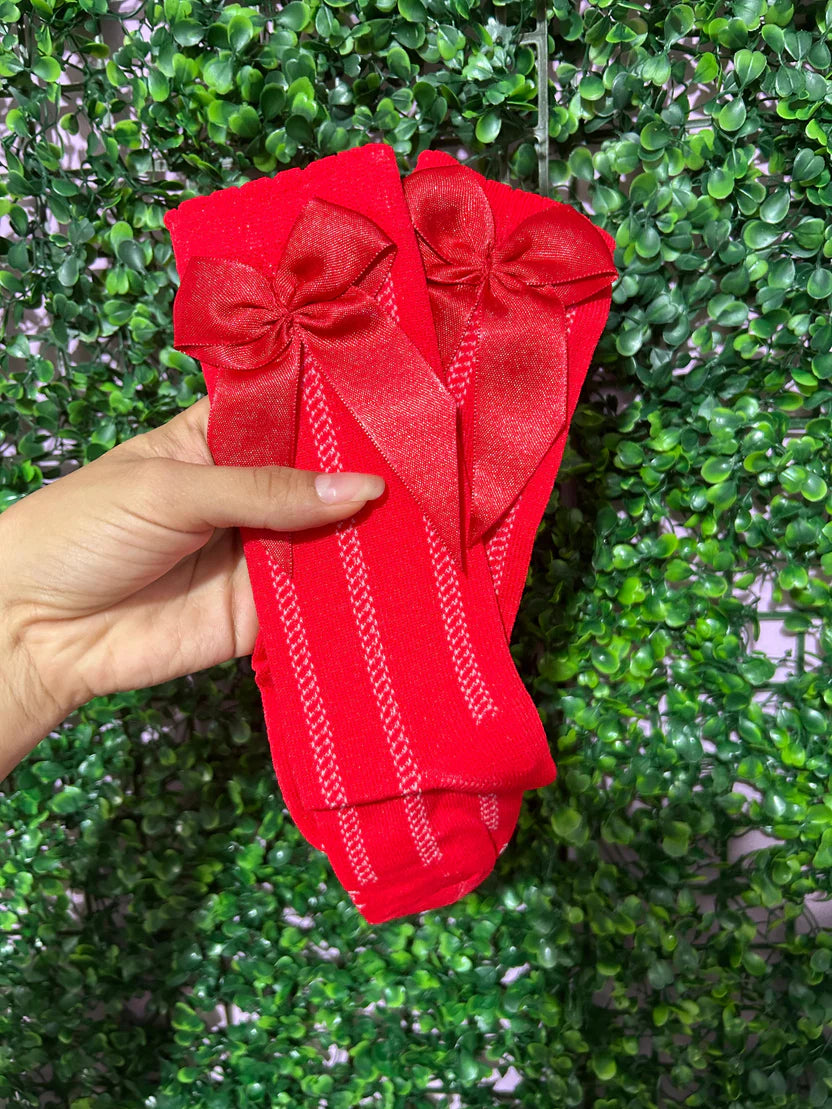 Medias largas con lazo para niñas, calcetines transpirables de mezcla de algodón para usar en todas las estaciones.